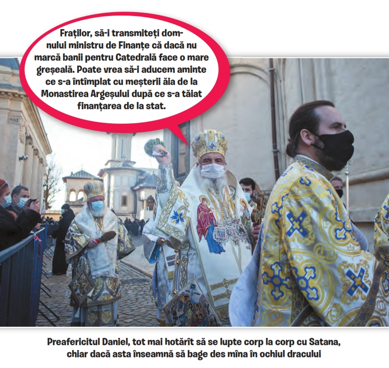 Patriarhul Daniel a cerut la rectificare 220 de milioane de lei pentru Catedrala Mântuirii Neamului. Cum ar fi să auzi că doamna pensionară Georgiana Petrescu a trimis o solicitare la guvern să fie și ea trecută la rectificare cu două mii de lei, că are un CAR care trebuie plătit?!