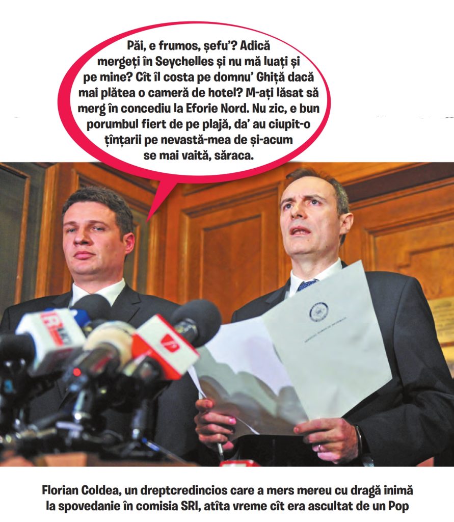 Am mai învățat că oamenii sunt proști, mai ales cei numiți “analiști”. Altfel cum să crezi că marea întrebare legată de relația Ghiță-Coldea e dacă generalul și-a plătit concediul în Seychelles singur. Deci maleficul absolut în lectura lor, generalul Coldea, atârna după 20.000 de euro la Sebi. Asta după ce, nu-i așa, el îi băga lui Sebi zeci de milioane în buzunar prin contracte cu instituțiile statului.