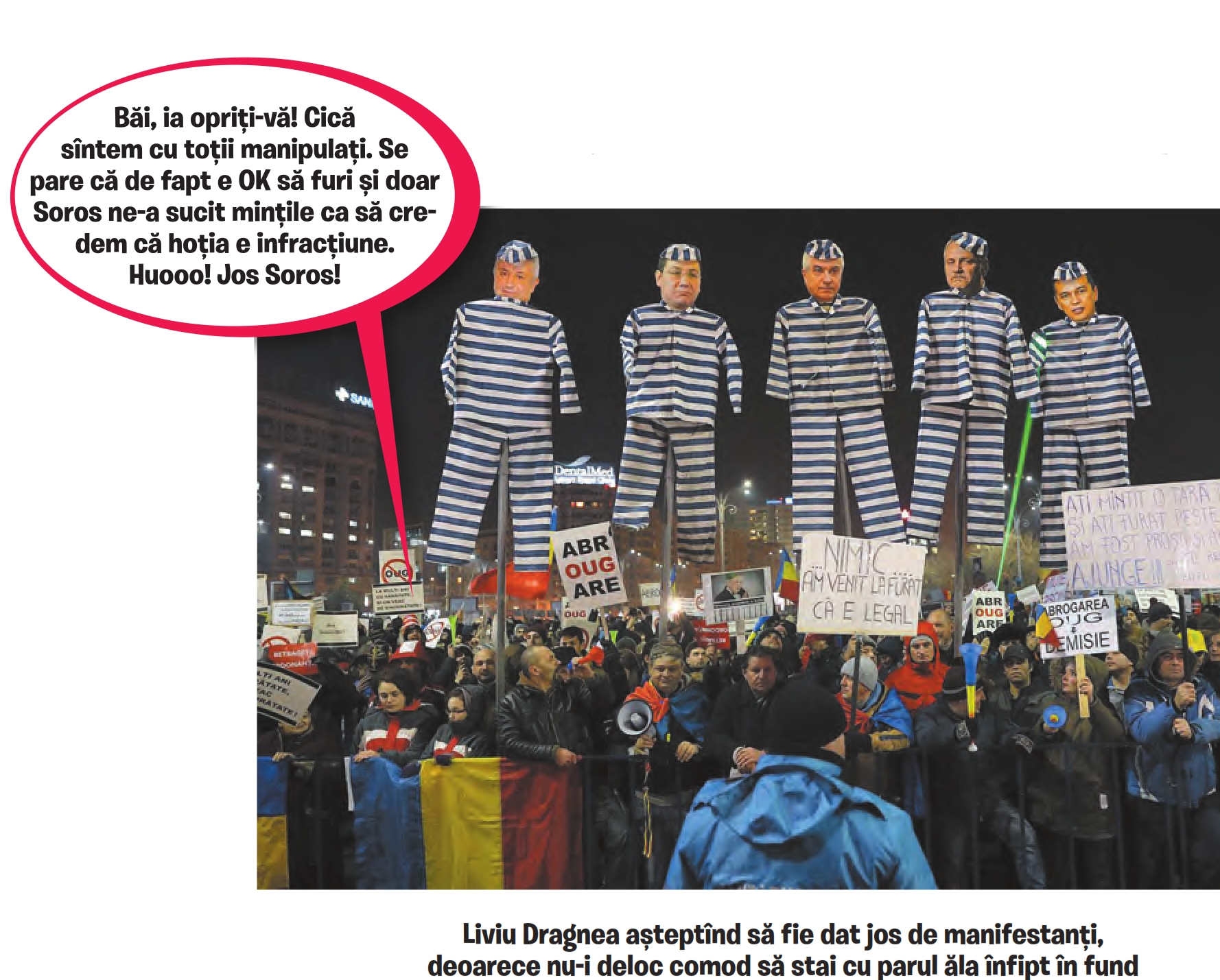 b) ăsta e planul României ca să conducă lumea: întîi scoate oameni în stradă pînă îl falimentează pe Soros și mai apoi, cu banii lui, preia puterea în oculta mondială (100 de puncte);