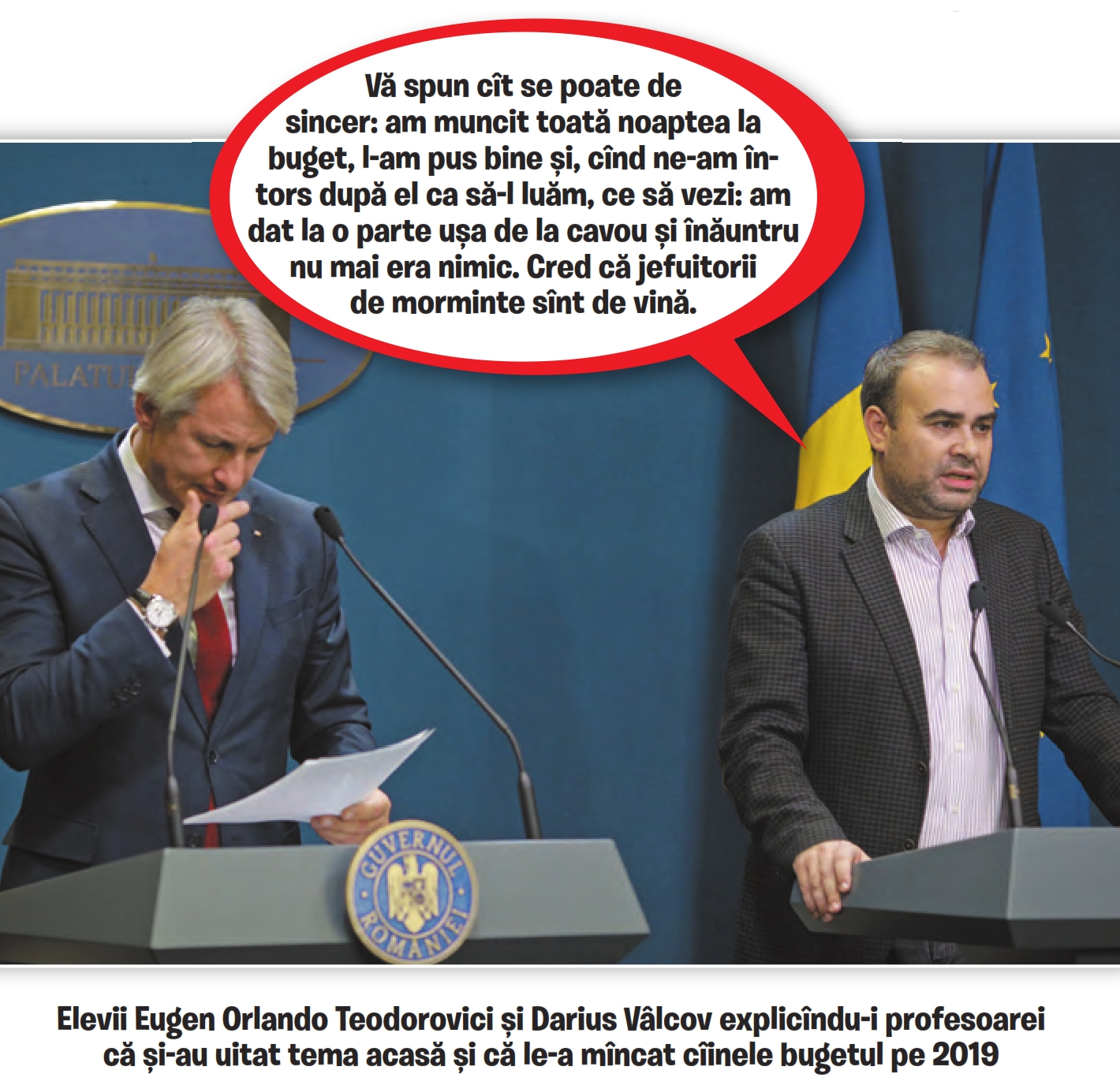 Viorica Dăncilă: „Terminați cu glumele proaste despre cum a picat doamna Mihaela la oral la ANAF, dînsa este economist cu vastă experiență. Mi-a garantat mie domnu’ Vâlcov. «Vio, știe fata meserie, e profesionistă!» Așa mi-a zis.”