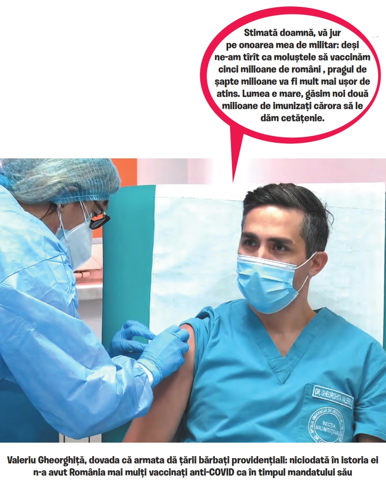 1) Pragul de cinci milioane de vaccinați a fost atins cu o întîrziere de două luni? Aiurea, manipulări tendențioase. Cine ar putea crede o asemenea absurditate? Ar însemna, implicit, să creadă că de campania de vaccinare s-au ocupat inși care erau fie prea proști, fie prea puturoși, fie polivalenți. De fapt, adevărul e foarte simplu: Guvernul a făcut treaba temeinic, așezat, fără grabă, pas cu pas. Românii trebuie să știe: ai noștri ca melcii!