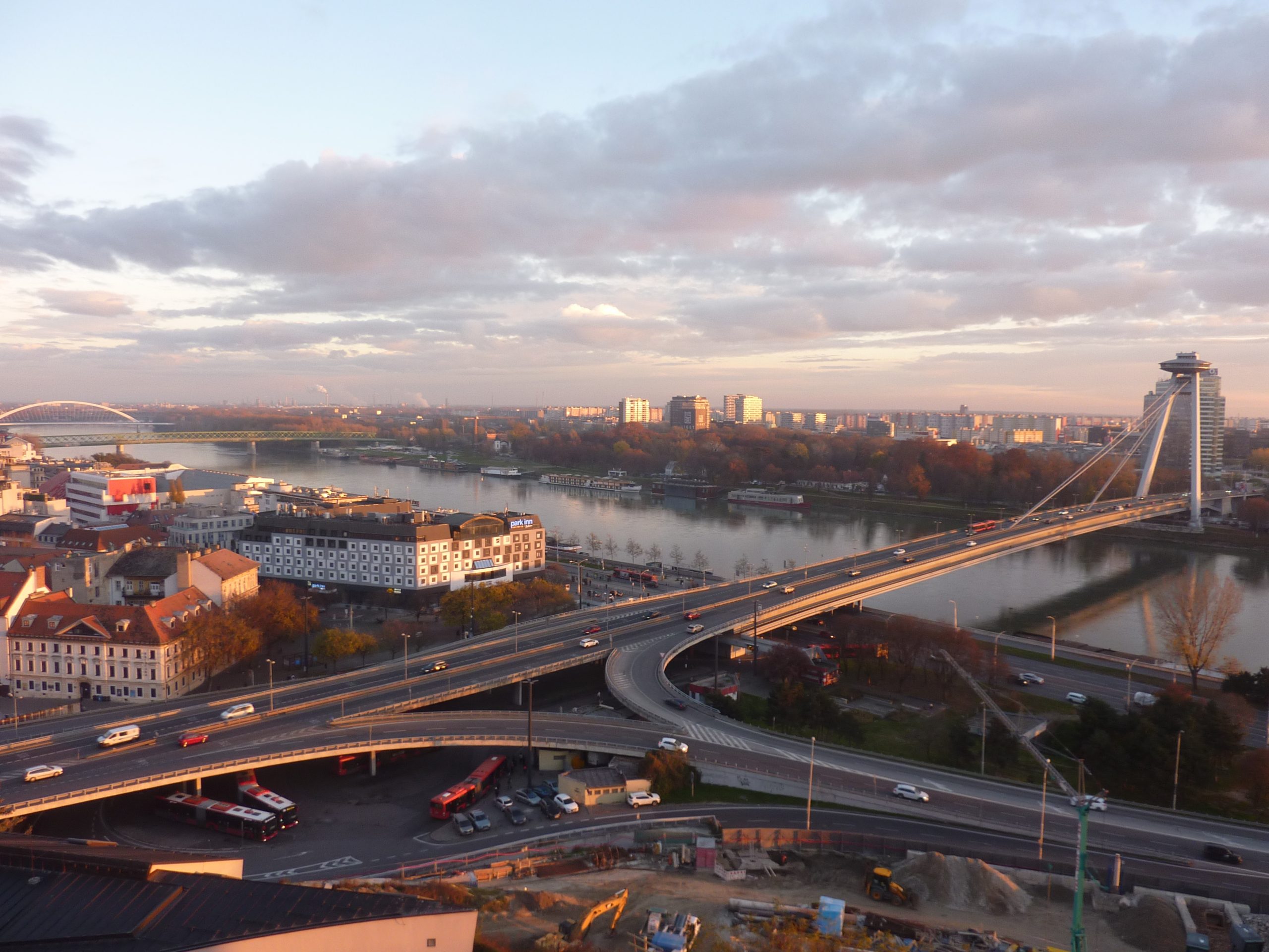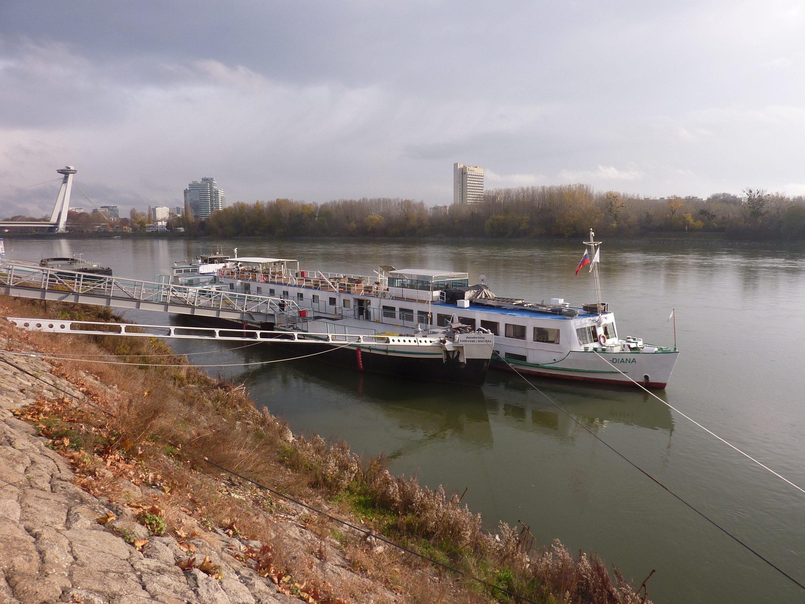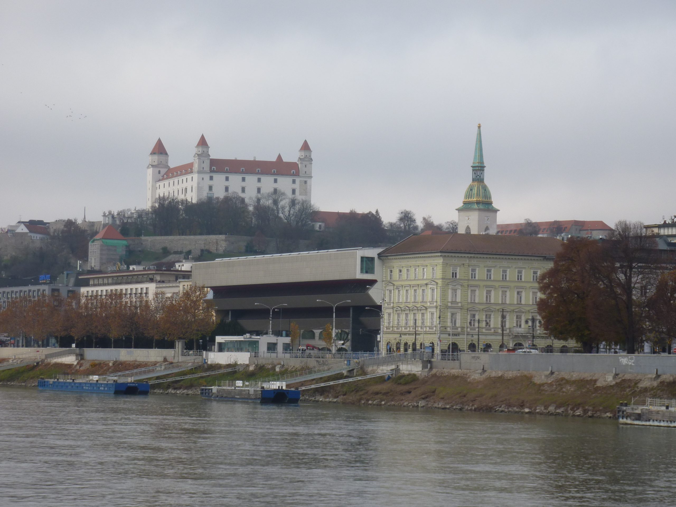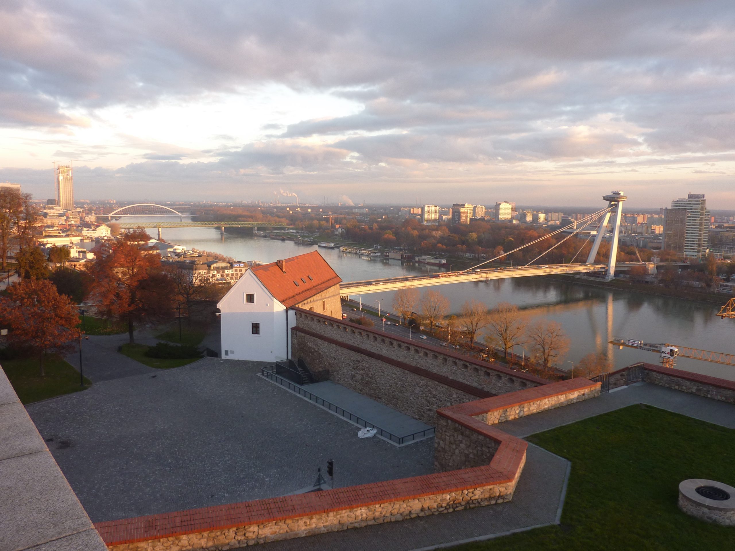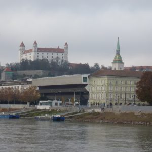 Cam la chestiile astea mă gîndeam, intrînd în Bratislava, după 16 ani, în timp ce MS Diana trecea pe sub podurile peste Dunăre ale orașului și acosta lîngă cel mai mare dintre ele, cel cu restaurant în formă de farfurie zburătoare pe un pilon, inaugurat în 1972. Venit de data asta pe apă, cu vasul croazierei dunărene Orșova-Viena (în septembrie 2006, ajungeam de la București, prin aer, și plecam spre capitala Austriei pe șine), mi se oferea fericita ocazie să fac update imaginilor trecutului, pentru că, exact ca la Belgrad sau Budapesta, la mal, ne așteptau autocarul și ghidul local al turului de oraș. Aici, un Isuzu alb de vreo patruzeci și ceva de locuri și Juraj, simpaticul slovac care ne-a povestit cîte ceva despre Bratislava, în timp ce ne-o și arăta, de pe roți sau de pe picioarele personale.