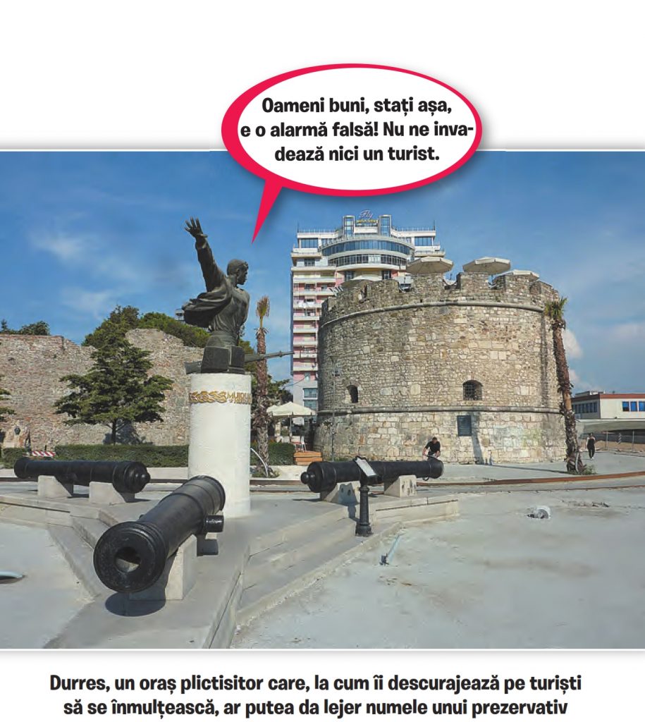 Promiteam să revin cu alte impresii turistice despre Albania. Cazat la sud de Durrës (se pronunță Durăs), principalul port și al doilea oraș ca populație după Tirana, într-un resort de cinci stele cam înghesuit, cu hoteluri foarte apropiate între ele, și ca distanță, și ca stil arhitectonic, gen campus studențesc premium, aveam să fac cunoștință mai întîi cu Albania de export, pentru turiștii străini. Cea a foarte tinerei stațiuni Golem, douăzeci de kilometri de hoteluri de trei-cinci stele construite în ultimii 10-15 ani, cam haotic (canalizarea străzilor, de exemplu, a rămas să fie făcută la o dată care va fi stabilită ulterior), pe o fîșie de litoral la Marea Adriatică mărginită de o pădurice de pini, la cîteva sute de metri de plajă. Complexuri turistice și rezidențiale (prețuri pentru jucătorii bursei imobiliare: o garsonieră – 10.000 euro, un apartament de trei camere – 25.000) ale unor proiecte cu fonduri autohtone exclusiv private, o investiție uriașă care n-a avut nevoie de ajutorul UE sau FMI. Ce-i ușor ciudat e că nimeni nu cunoaște sursa banilor, dar nici nu-i curios s-o afle, începînd de la trecătorul de pe stradă și terminînd cu Guvernul albanez, care a rezolvat chestiunea cu o amnistie fiscală: cîtă vreme îmi dai taxe pe proprietate, nu mă mai interesează cum ai dobîndit-o.