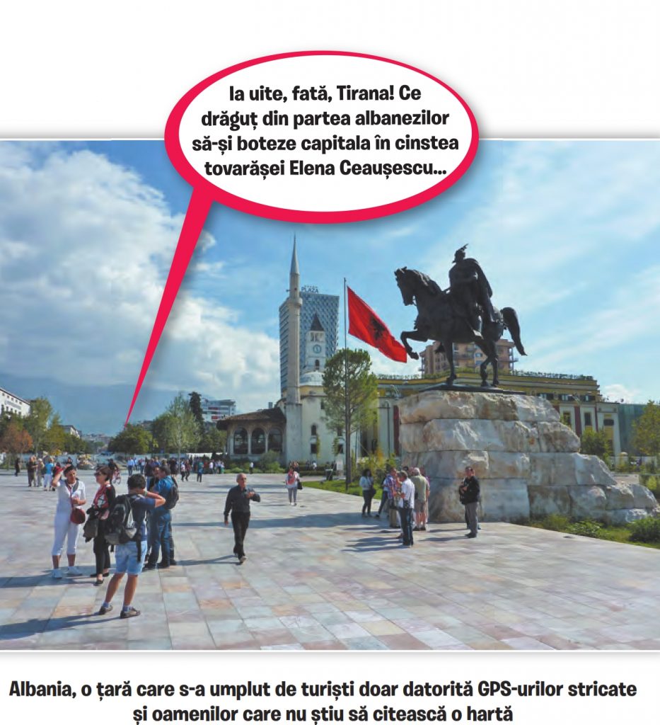 Mai mult de o zi și o noapte (viața de noapte ar fi, cică, vibrantă, pentru cei suficient de aventuroși cît s-o încerce) nu prea ai ce face în Tirana. Să te învîrtești prin piața anterior pomenită, să urci în Sahatit, bicentenarul turn cu ceas de 35 de metri înălțime (200 leka accesul, un leu e 30 de leka), să intri în moscheea Et’hem Bey, să-ți faci selfie-uri cu statuia ecvestră a eroului național Skanderbeg, un fel de Ștefan cel Mare albanez care s-a luptat vitejește cu turcii, cîștigînd 46 de războaie și pierzînd doar unul (cel mai important: au urmat cinci sute de ani de dominație otomană), să te plimbi printr-un parc sau pe o pietonală cochetă umbrită de copaci, ambele situate în imediata apropiere a centrului. Și să supraviețuiești traficului nebun, care nu ține cont de culoarea semaforului (un ML negru a trecut razant pe lîngă mine, pe roșu, pe trecerea de pietoni, chiar în fața mașinii de Poliție, care n-a avut absolut nici un fel de reacție).