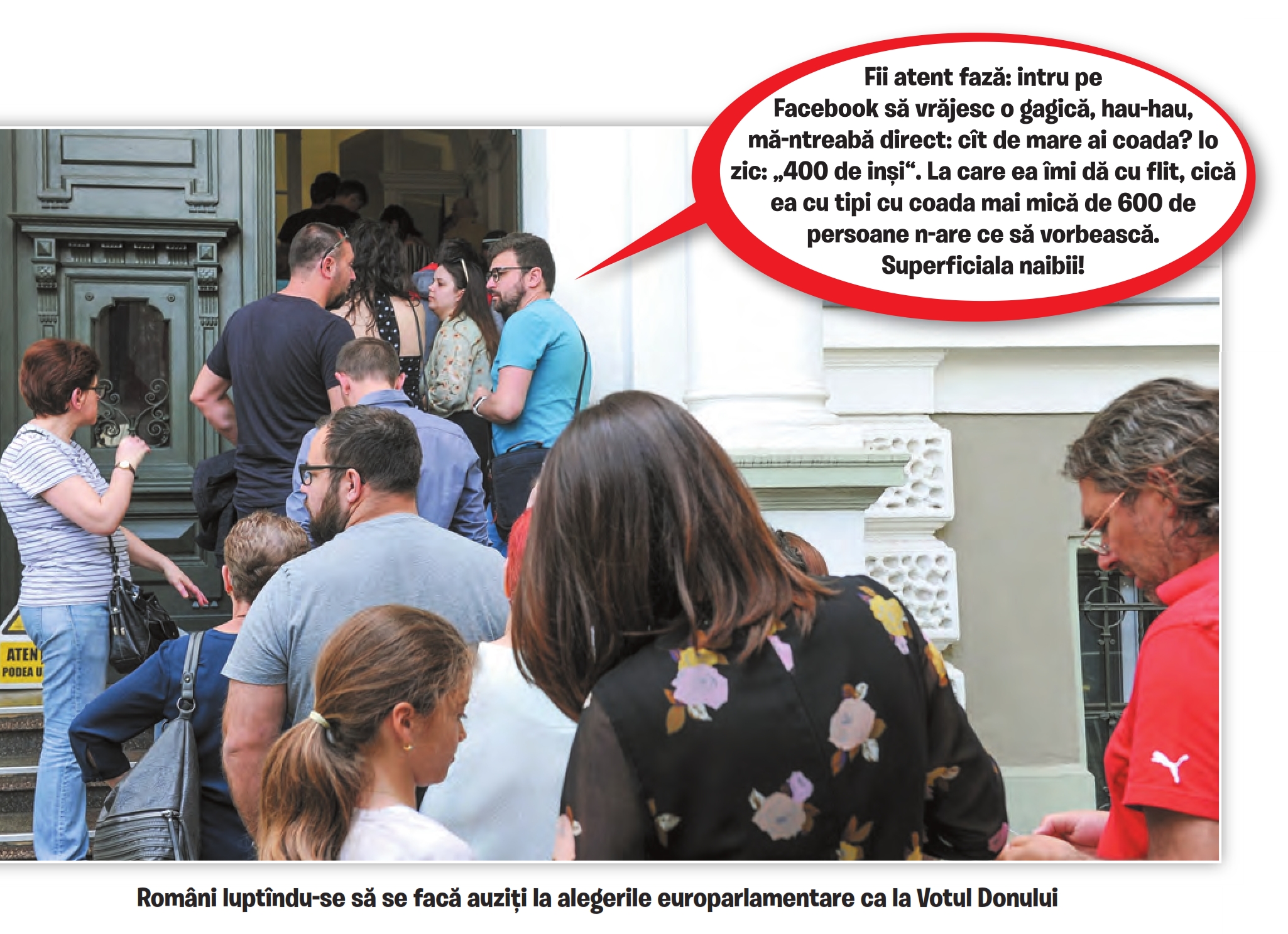 Incredibile cozile făcute de români pentru a vota, atât în țară, cât și în străinătate. Așa e când ești țară tânără: acum ceva ani se stătea la coadă pentru mâncare, acum stăm la cozi pentru democrație. Se stă cu mic, cu mare. Da, da. Copiii, chiar dacă nu au drept de vot, stau și ei la cozi. Dar pentru sănătate. Dintre toate oraşele ţării, doar nouă au clinici de pediatrie. Împărţirea pe regiuni dă pruncilor şanse mici, iar părinţilor deznădejde. În Moldova este un singur spital. La fel în Banat şi Dobrogea. Muntenia are două, Transilvania, trei, iar Bucureştiul, patru. Restul stau pe hârtie și așteaptă arabii și turcii după care tot umblă Guvernul. Pare că suntem tot mai aproape să spunem că nu facem spitalele alea regionale cu nimeni, că nu e nimeni pe măsura pretențiilor noastre. Hai să stăm să vedem ce găsesc roboțeii ăia pe Marte, poate ne înțelegem cu ăia.