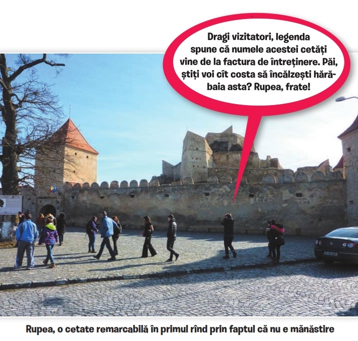 După ce-a trecut de Brașov, pe partea dreaptă a șoselei E60 care duce la Sighișoara, privirea călătorului prin Transilvania este atrasă brusc de niște ziduri cocoțate pe o culme de deal vizibile de foarte departe. Este Cetatea Rupea, cel mai important obiectiv turistic al zonei și epicentrul festivităților din august: anul ăsta s-au împlinit fix șapte secole de la prima atestare documentară a localității, o însemnare de cronicar atent la evenimentele timpului său, care menționează, sub denumirea de Castrum Kuholm (de la bazaltul folosit la ridicarea fortificațiilor), locul de refugiu al sașilor răsculați împotriva regelui Ungariei, Carol Robert de Anjou. Important centru comercial și meșteșugăresc, pe la sfîrșitul perioadei medievale, cu vreo 12 bresle de meseriași din tată-n fiu care se ocupau cu producerea și confecționarea bunurilor de necesitate zilnică, de la îmbrăcăminte și încălțăminte la alimente și obiecte de uz casnic, cetatea era folosită ca loc de apărare de populația satelor din împrejurimi amenințată de năvălirea oștilor dușmane, poziționarea sa strategică, la intersecția drumurilor de legătură către Moldova și Țara Românească prin pasurile sud-estice, constituind și un avantaj, prin accesul mai facil la rutele comerciale, dar și un potențial pericol, dat de avutul locuitorilor, tentație irezistibilă în calea celor veniți pe-aici numai să ia.