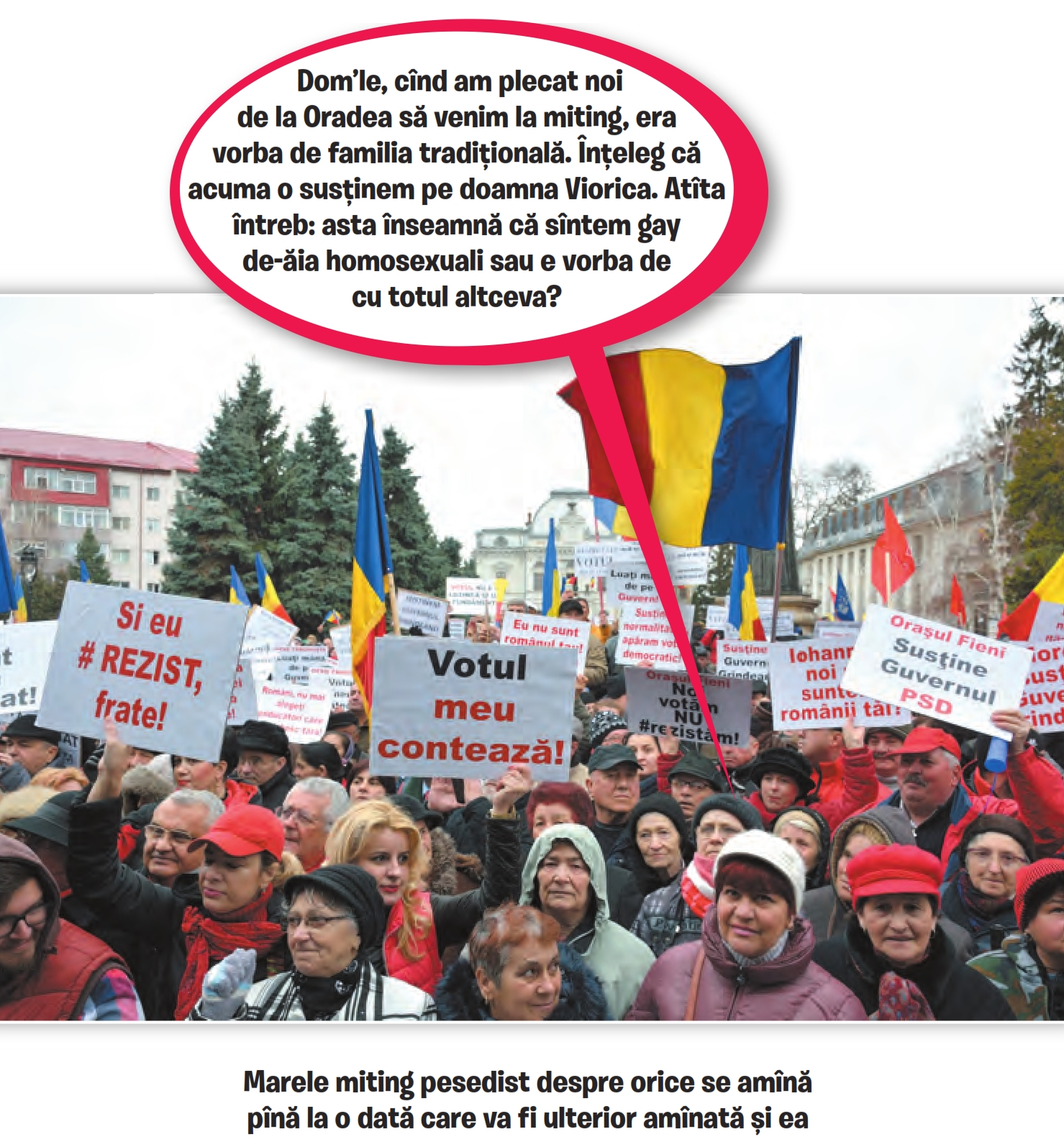 A mai fost milionul o dată, acum o lună, cu familia tradițională. Din nou: facem frumos, scoatem veteranii la plimbare, blocăm țara cu autocare. N-a fost să fie, s-a amânat pentru că nu se știe când va fi referendumul.