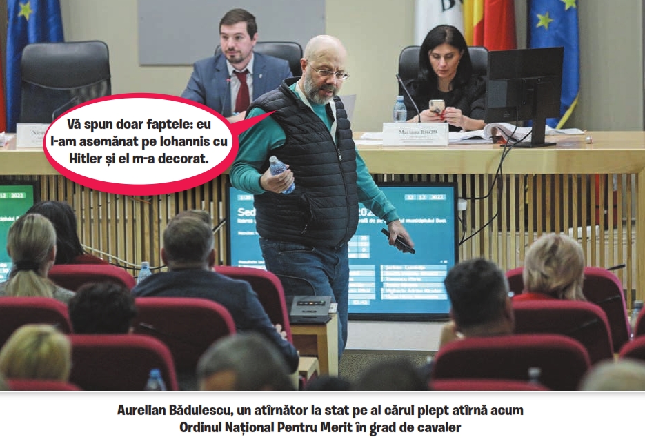 Acest Bădulescu, în 2020, a pus pe Facebook o imagine cu președintele Iohannis transformat în Adolf Hitler. Pe ăsta l-a decorat deci președintele. Vă dați seama ce mare, ce imensă durere în cur are președintele. Pur și simplu, niște neterminați mintal din administrația de la Cotroceni îi pun în față niște foi și el semnează ca motocoasa, fără să se uite ce face.