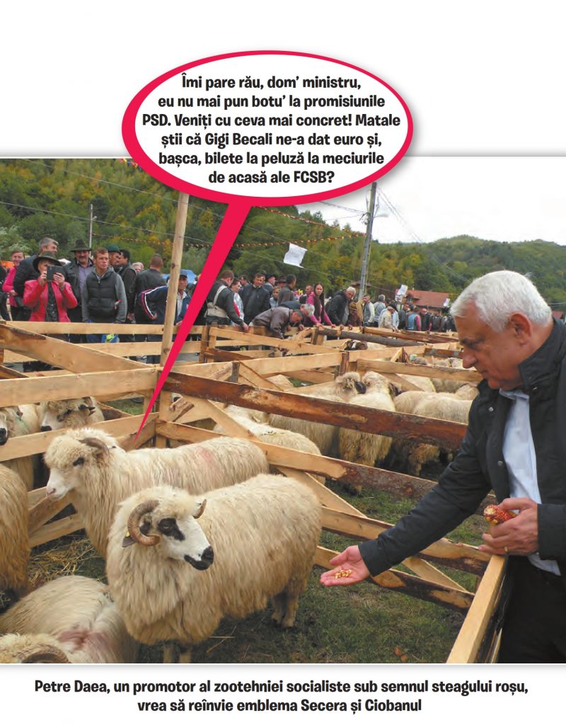 Arhitectul acestui monument al suferinței Mioriței este Petre Daea, el este cel care a susținut acest mod de a valorifica oia românească, oaie pe care o dorea simbol național. “Oaia este o statuie vie” spunea Daea, însă această aplecare poetică a fostului ministru al agriculturii este contrazisă de realitatea celor 14.600 de statui moarte, înecate, zidite de el în ctitoria zootehniei din România, asemenea unui Meșter Manole modern. În vara acestui an, în iulie, un alt transport cu 70.000 de oi, suite pe un vapor cu destinația Golful Persic, a stârnit indignarea publicului. În condițiile unei perioade toride, când vaporul era un adevărat cuptor, oile lui Daea aveau de înfruntat în condiții barbare – fără apă, fără mâncare și fără asistență veterinară – suferința unui lung drum pe mare. Cu această ocazie Asociația Animals Internațional și-au declarat intenția de a da în judecată Guvernul României pentru “tortură planificată împotriva animalelor”. Nici măcar intervenția comisarului european Wytenis Adriukaitis, care i-a cerut lui Petre Daea să stopeze acest gen de export, nu a avut rezultat. Așa se face că magazinul cu brânză de oaie românească, înființat cu fast de Meșterul Daea la București, are astăzi galantarele goale, asta probabil pentru că se stă mai binâ la cașcaval dacă este vinduta suferința Mioriței în viu la arabi, decât sub formă de telemea acasă.