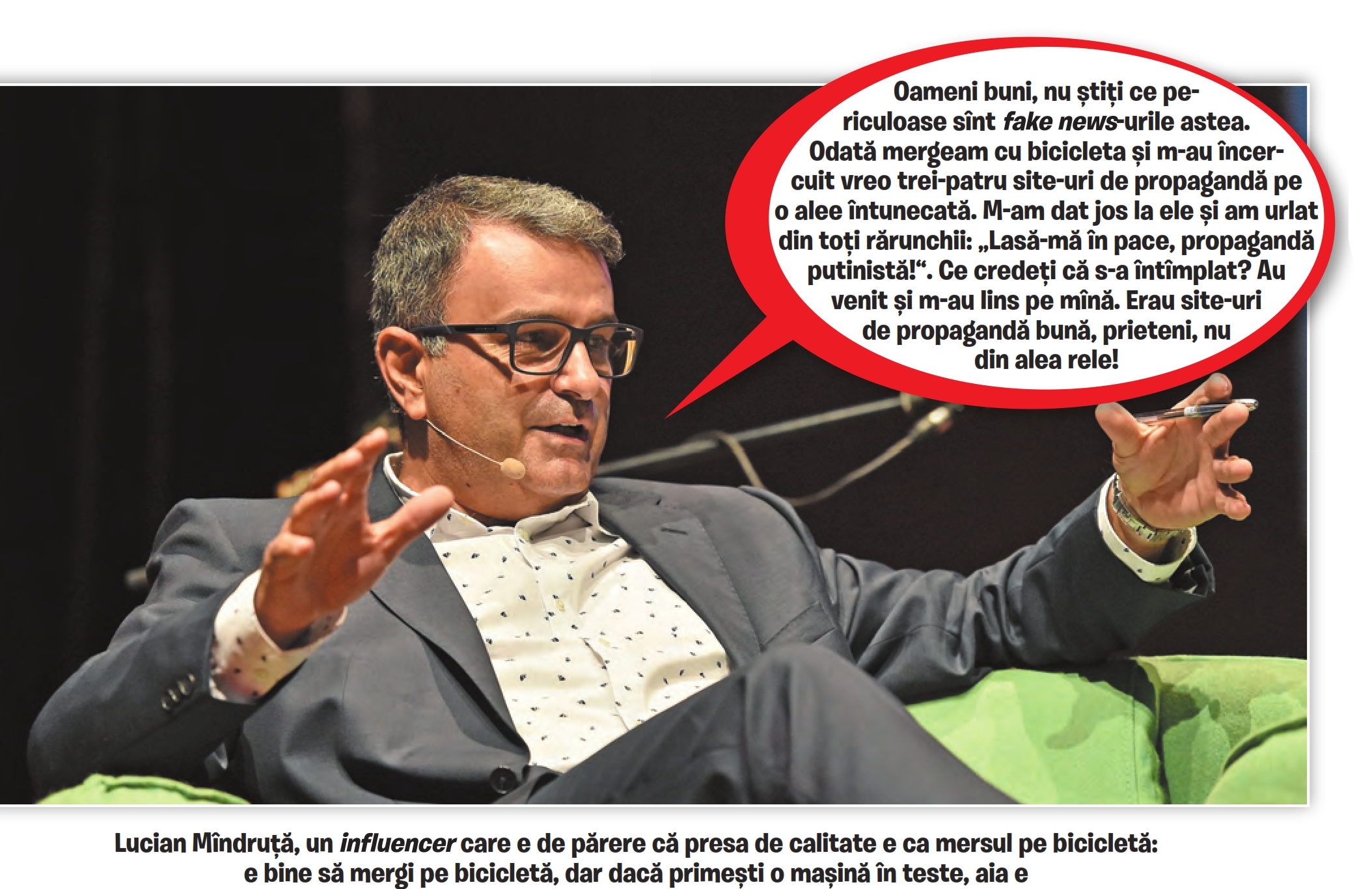 Lucian Mîndruță a intervenit și el împotriva elevului, pe care-l vrea expulzat la Moscova cât mai repede. ”Poate că mă înșel și nu e omul rușilor, dar ia să ne gândim puțin… Dacă nu e spion, înseamnă că e un elev foarte leneș, căruia o să-i fie lene și să muncească și care o să ajungă un asistat social. Oricum ai da-o, e bine dacă-l expulzăm. Cred în această idee și sunt gata să-l duc eu pe cadrul de la bicicletă până-n Piața Roșie, dacă nu se găsesc bani de bilet.”