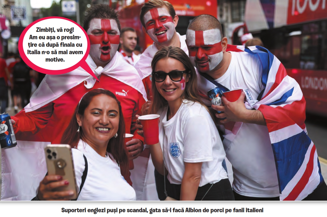 – Ce voiam să zic e că nu m-am îmbrăcat cu tricoul ăsta pentru că țin cu Anglia, ci pentru că nu aveam ce altceva să pun pe mine. Eu aș fi preferat să port tricoul Italiei, pentru că știu că-i plin de moldoveni pe-aici și nu vreau să iasă scandal.