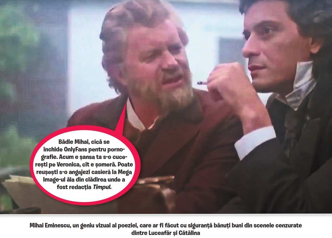 Creangă îi ia telefonul din mâna lui Eminescu și-i deschide aplicația de OnlyFans.