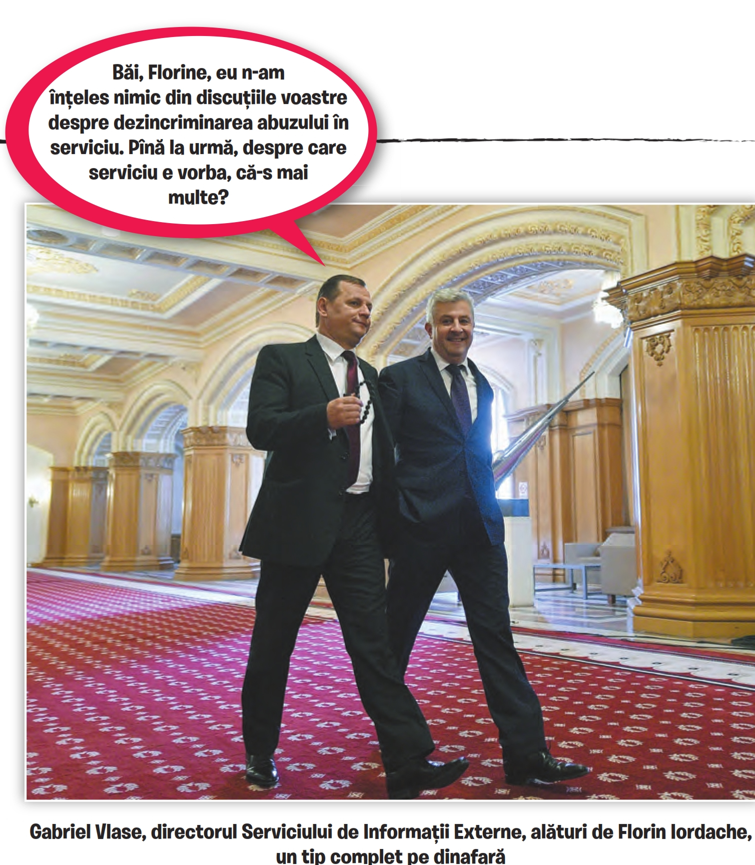 De aproape treizeci de ani, prin subsolurile democrației românești, acolo unde alte țări țin arhivele și șobolanii, se bat pe viață și privilegii serviciile noastre de informații. SRI îi dă la gioale lui SIE, SIE carotează serviciile Internelor, Internele sar la beregata SPP, SPP îl trage de codițe pe STS și tot așa. S-au dat lupte crunte, a curs multă cerneală, s-au pierdut averi și s-au cîștigat ani grei de închisoare, dar războiul n-a avut parte niciodată de o bătălie finală, care să rezolve totul. De aproape un an, însă, de cînd președintele a catadicsit să umple scaunul de șef al SIE cu Gabriel Vlase, lucrurile au început să se mai liniștească. Brusc, generalii din subordine au înțeles că mai bună decît orice păruială este colaborarea și că, împreună cu partenerii de la SRI, pot obține mai mult, mai repede, mai durabil. A ajutat mult și faptul că Vlase primește des solii prin intermediul amicului și partenerului de afaceri Mihai Tudose sau bilețele de la celălalt amic bun, Georgian Pop, dar, mai mult ca sigur, interesul național a fost cel care, de fapt, a pus capăt acestei lupte fratricide.