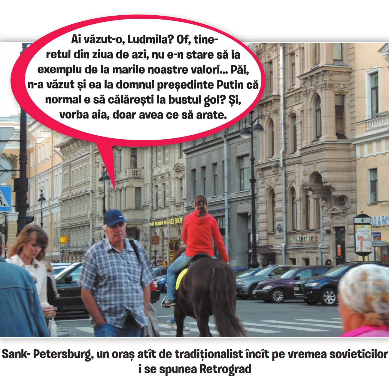 Ca să mă explic, trebuie s-o spun pe-a dreaptă: rușii seamănă mult cu românii, în sensul că se urăsc cu patimă (și fiecare pe sine, și unii pe alții) și-și urăsc și orașele. Moscovitul e mândru nevoie mare că el nu stă în „provincie”, dar își blestemă soarta zi de zi, în trafic, iar când are liber, o zi-două-trei, nu știe cum să fugă mai departe (întocmai ca bucureșteanul); de iubit, ce să mai vorbim! Cu totul altfel stau lucrurile la Petersburg, unde localnicul nu e prea dornic să „evadeze” când poate, ci mai degrabă să meargă-n parc cu prietenii și să se bucure de vremea bună. Dacă nici el nu-i cunoaște prețul, atunci nu i-l cunoaște nimeni! Iar dacă tot am ajuns aici, e momentul să precizez că am fost foarte-foarte curios să aflu adevărul despre celebra „ură” dintre moscoviți și petersburghezi, așa c-am deschis subiectul cu aproape fiecare om cu care-am stat de vorbă. Am rămas cu impresii amestecate. Pe de o parte, moscoviții n-au fost prea interesați de chestiune, au admis că Petersburgul e „frumos” (prea puțini îl vizitaseră), dar că oamenii de-acolo se „țin cu nasul pe sus”. Petersburghezii, pe de altă parte, aveau despre moscoviți păreri mult mai clare: „idioți”, „corupți”, „ignoranți” și altele asemenea, plus că îi acuzau de prea mare drag de bani și că nu știu să trăiască. Pentru a micșora proporțional raporturile dintre aceste două orașe până la dimensiuni românești, aș zice că Bucureștiul și Oradea reproduc, în mic, relația dintre Moscova și Petersburg. Nu Clujul, nu Iașiul, nu Timișoara, nu; ci Oradea. Argumente: Oradea se știe întemeiată de un rege, Oradea a renovat tot ce-a putut, Oradea este poarta europeană a țării, Oradea atrage turiști bucureșteni, nu invers (vreau să zic că Ermitajul mi s-a părut plin de moscoviți, ca să continui comparația). Gata, închei cu teoretizările astea: eu, unul, am mâncat o delicioasă ciorbă de castraveți murați, am băut, m-am simțit bine și în siguranță, am prins vreme bună, am savurat parcurile (Alexandrovsky rules!) și mi-a plăcut cam totul, în afară de prețuri. Mici, față de Moscova…