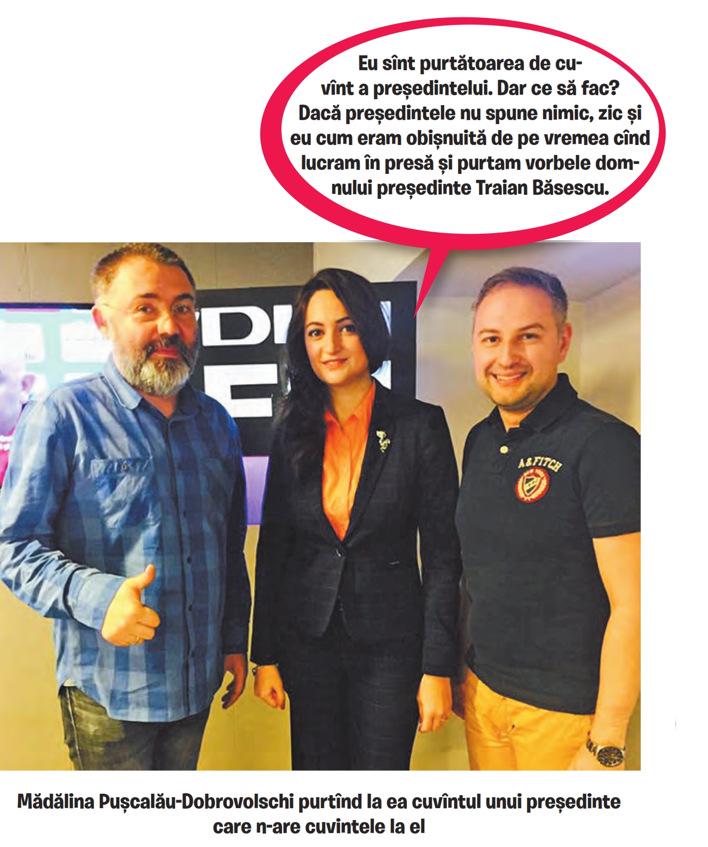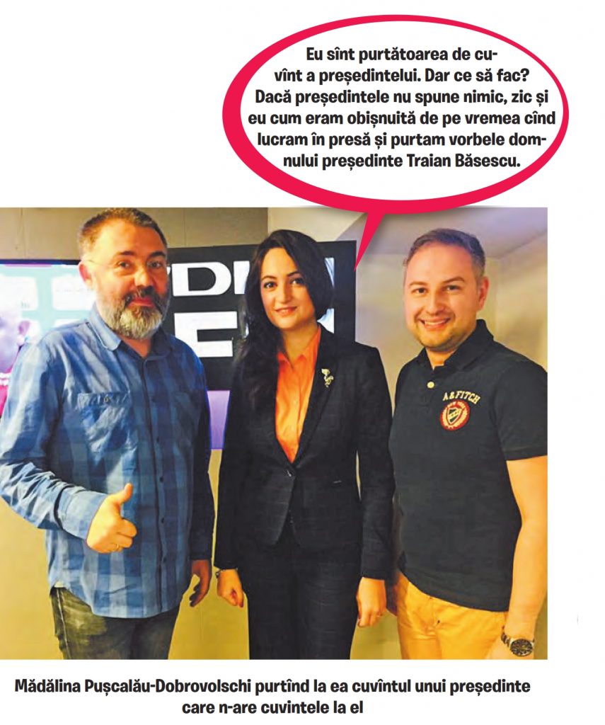 Mădălina Dobrovolschi (purtător de cuvînt al Președinției): “Ca de fiecare dată cînd vorbim despre existența unor informații, președintele României e foarte informat.”