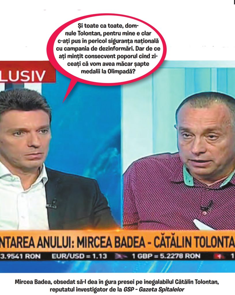 După duelul de la Sinteza zilei, se pare că Badea e acum curios ce nereguli i-ar găsi Tolontan motociclistului. ”Prietene, cred că îl termină Tolontan. Poate că motociclistul știe bătaie, dar Tolo are tot ce-i trebuie: are surse, are verb, are principii. Nu știu dacă-l bagă în spital pe ciumpalac, da’ la DNA sigur îl trimite”, a scris Badea pe pagina lui de Facebook, între două injurii adresate unor femei băsiste care nu respectă idealul său de frumusețe.