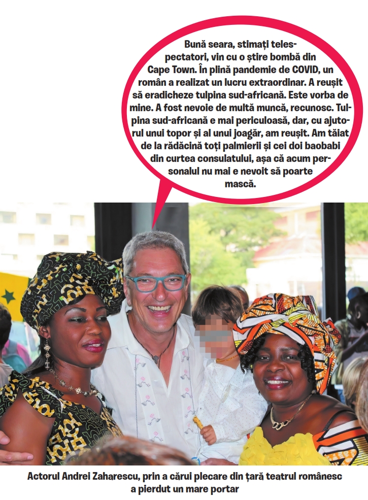Nici alde Orban, Cîțu, Aurescu n-au mai zis nimic despre readucerea în țară a lui Zaharescu după ce au înțeles că i-a luat gura pe dinainte. Iar îndrăgitul prezentator, considerat acum „profesionist“, se bronzează în Cape Town, sub palmieri, mîngîiat de foșnetul dolarilor de la buget. România poate dormi liniștită, are cine s-o apere de tulpina sud-africană.