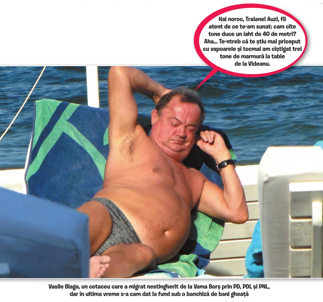 După ce se prinse că a căzut victima unei campanii publicitare agresive și înșelătoare, Vasile Blaga îl trimisese pe Mamadou să mai aducă o carafă de palincă, de la rece. Mamadou, care se învățase cu oaspetele său, adusese direct două, pe care defectorul le terminase în jumătate de oră. Acum dormea pe șezlongul lui preferat, pe marginea piscinei. Mamadou bătu de șapte ori în micul balafont pe care-l purta la gât și imediat se înființară doi tineri vânjoși.