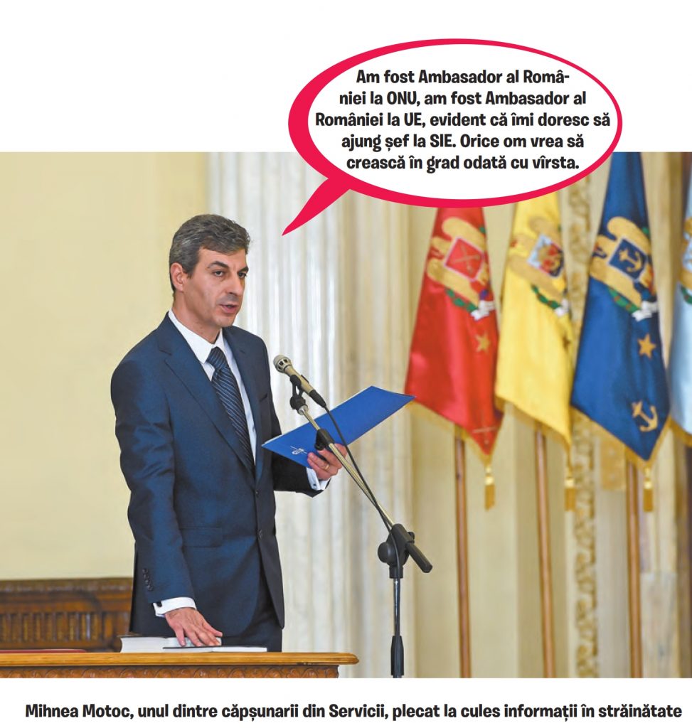 Acum, după ce s-a considerat că situația s-a fezandat îndeajuns, președintelui i s-a sugerat că are o idee nemaipomenită. După care i s-a spus și ideea: Mihnea Ioan Motoc. În definitiv, omul e diplomat de carieră de aproape 27 de ani, e tenace și muncitor, n-a ars etape și, se spune, a colaborat mereu exemplar cu reprezentanții din diplomație ai SIE. Cică, fermecat de performanțele deosebite pe plan extern, pe care nu i le poate nimeni atribui lui Meleșcanu, Iohannis ar fi gata să cedeze. Îl mai ține de la a-și pune semnătura pe propunere amintirea momentelor din 2016, când aceiași generali care-și promovează acum omul l-au învățat pe Ungureanu să nu demisioneze în urma unui capriciu prezidențial.