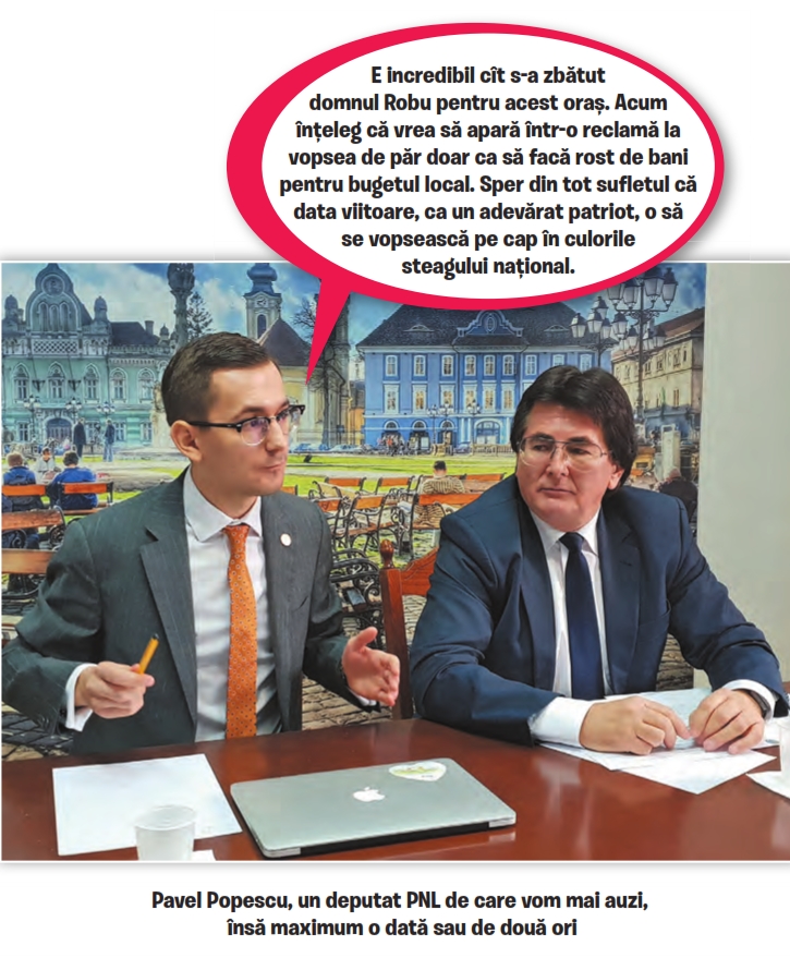 Astăzi, Pavel Popescu, deputat de Timiș, este președintele PNL Sector 4 București și un model de succes în PNL. Este trimis de partid să apară la televizor ca să explice, doct, arțăgos și superior, măsurile economice ale partidului. Dă lecții de la înălțimea performanțelor sale antreprenoriale (deh, nu e la îndemâna oricui să câștige 1.000 de lei pe lună într-o țară în care salariul mediu net este undeva la 15.300 de lei), gândește reforme pe care nu le împărtășește cu nimeni și visează la tăieri de pensii, dar nu toate alea speciale, ci doar alea care se pot tăia, adică mai niciunele. Oricum, atunci când și-a chemat și părinții în Norvegia, acolo unde aceștia trăiesc și azi, a făcut-o cu un scop recunoscut într-un interviu din Libertatea: „Atunci când vor ajunge într-un spital din România, să aibă o pensie cu care să-și poată permite să dea șpagă pentru a nu muri“. Ei, da, asta da viziune la omul care ar vrea să ajungă primar al sectorului 4 din București, pe scaunul altădată ocupat de Piedone.