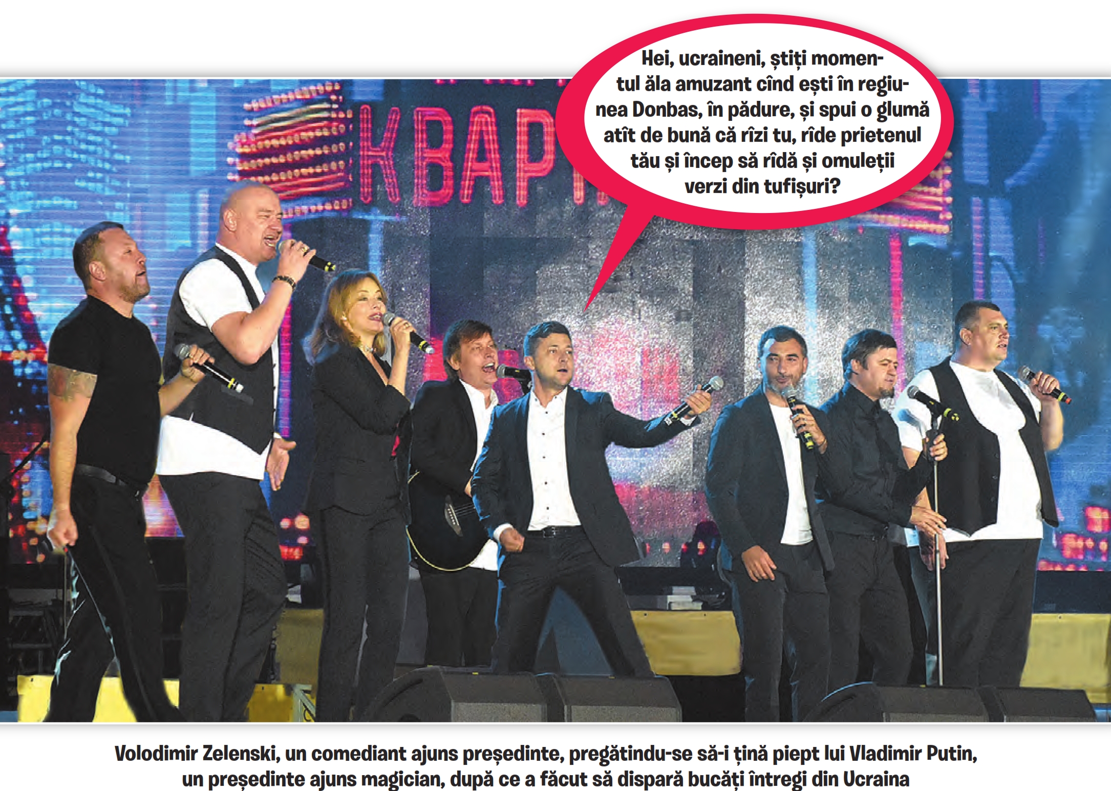 Liviu Dragnea: „Nu-mi vine să cred în ce hal am ajuns. Ucraina are ca președinte ditamai actorul de comedie, în timp ce la noi la Cotroceni stă unul care nu-i în stare să spună nici măcar un banc. Mi-e groază de întâlnirile bilaterale care vor veni. Vă dați seama că ucraineanul o să spună glume și al nostru n-o să știe cum să râdă? Oameni buni, treziți-vă! E timpul ca românii să aibă un președinte cu simțul umorului. Apropo, știți bancul ăla cu Bulă, pe care-l trimite învățătoarea să ude buretele?”
