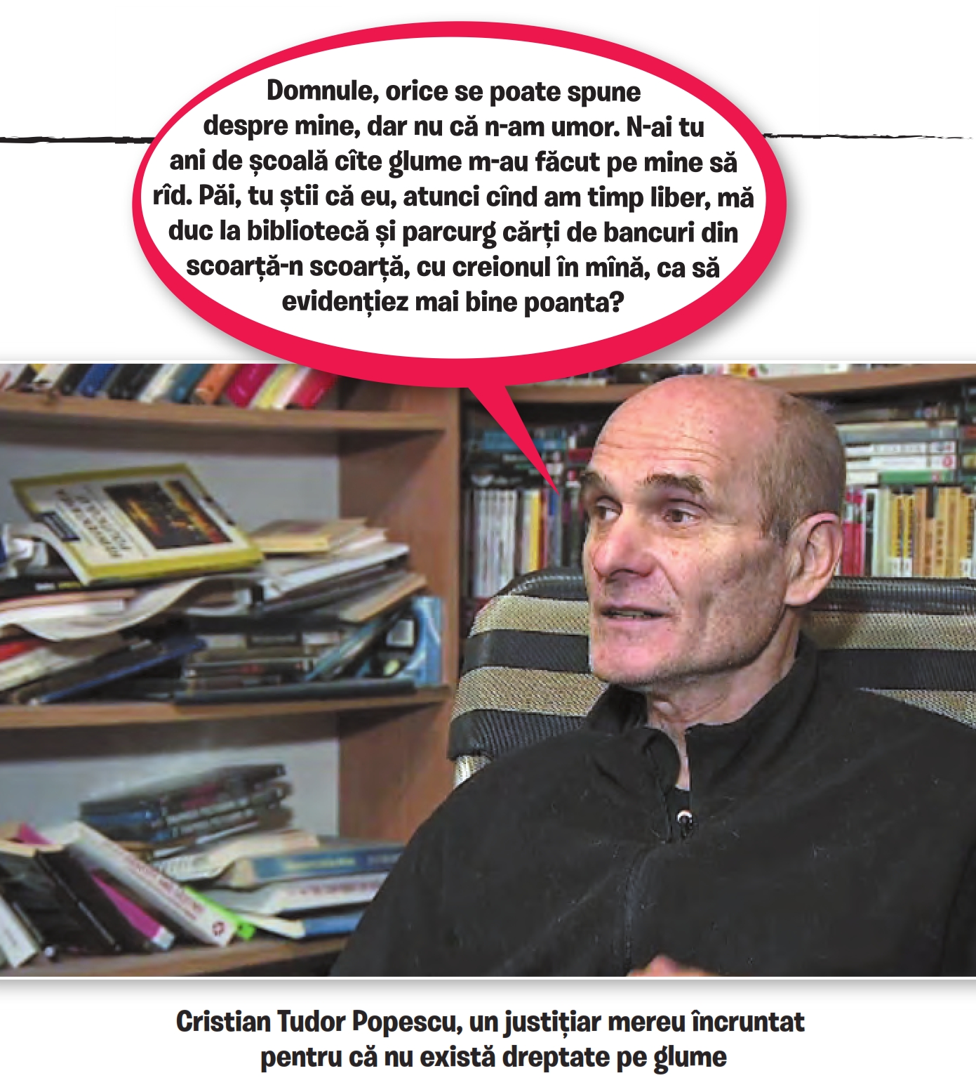 – Sigur că pot. Ai venit unde trebuie. Am un simț al umorului redutabil. Am râs la mii de glume de-a lungul timpului. Rar se-ntâmplă să aud o glumă și să nu izbucnesc în hohote. Eu, de fiecare dată când cineva îmi spune o istorioară comică, râd, pentru că așa e natural și sănătos, dacă ai simțul umorului și nu ești un android cinefil cu rânjet metalic.
