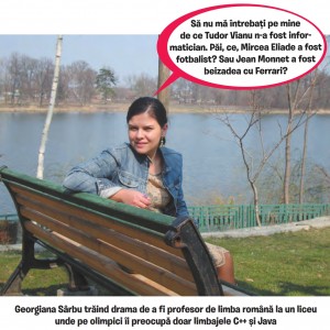 Scriitoare și profesoară de limba română la Liceul “Tudor Vianu”. Reporter: Au valoare profesorii? Georgiana Sârbu: Evident că există valoare, look at me… Glumesc, da? Dar valoare există, cel puțin […]