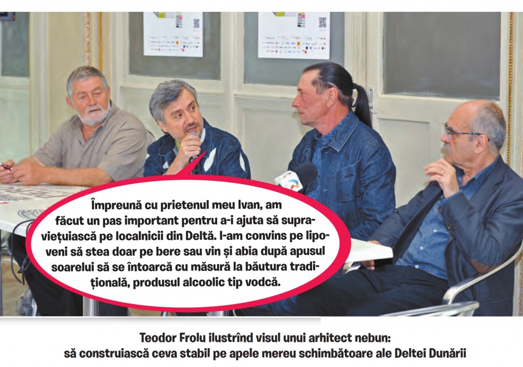 T.F.: Pescarul, după postul Crăciunului, nu discută decît de porc, cu toate derivatele lui. Cum porcii în Deltă sînt la ei acasă, uneori au și creastă de blană. Nu lipsesc toba, lebărul, șoriciul și mai ales friptura la cuptor.