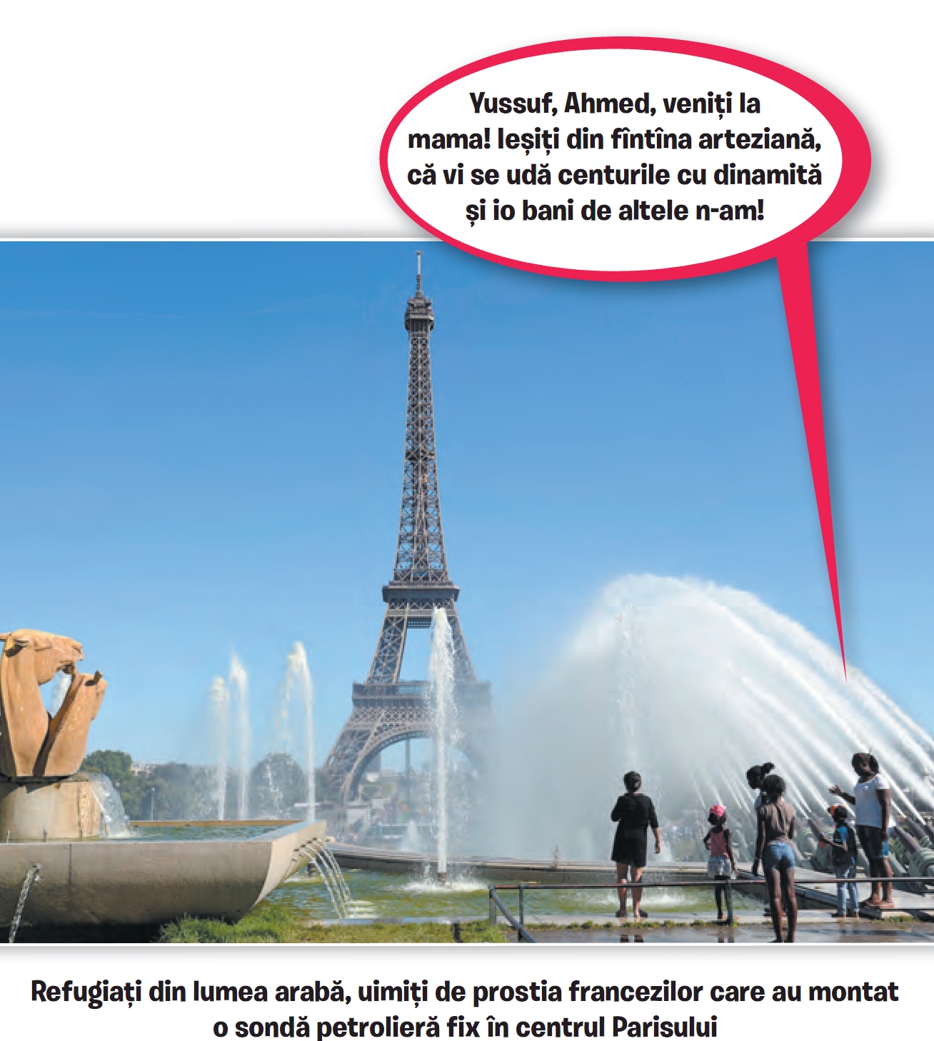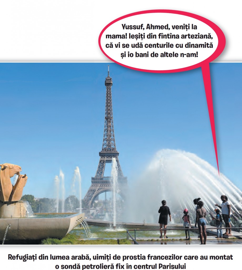 Dragă jurnalule, am plătit azi 6.000 de dolari unei călăuze să ne ducă la Paris. A fost scump, dar nu așa de scump ca o apă pe Aeroportul Internațional “Henri Coandă”. Călăuza ne-a dus la Slobozia și ne-a zis c-am ajuns, uite Turnul Eiffel. I-am zis că ăla nu-i Turnul Eiffel. În Siria eram arhitect, știu și io cum arată Turnul Eiffel, asta-i Slobozia. A zis: bine, e Slobozia, dar e mult mai bine ca la Paris. Ce? La Paris au și Turnul Eiffel, și ferma din Dallas? N-au! Are dreptate. Mi-a mai cerut 6.000 de dolari pentru că mi-a dat și Turnul Eiffel, și ferma din Dallas. I-am dat. Tot e mai ieftin ca o pungă de covrigei pe Aeroportul Internațional “Henri Coandă”.