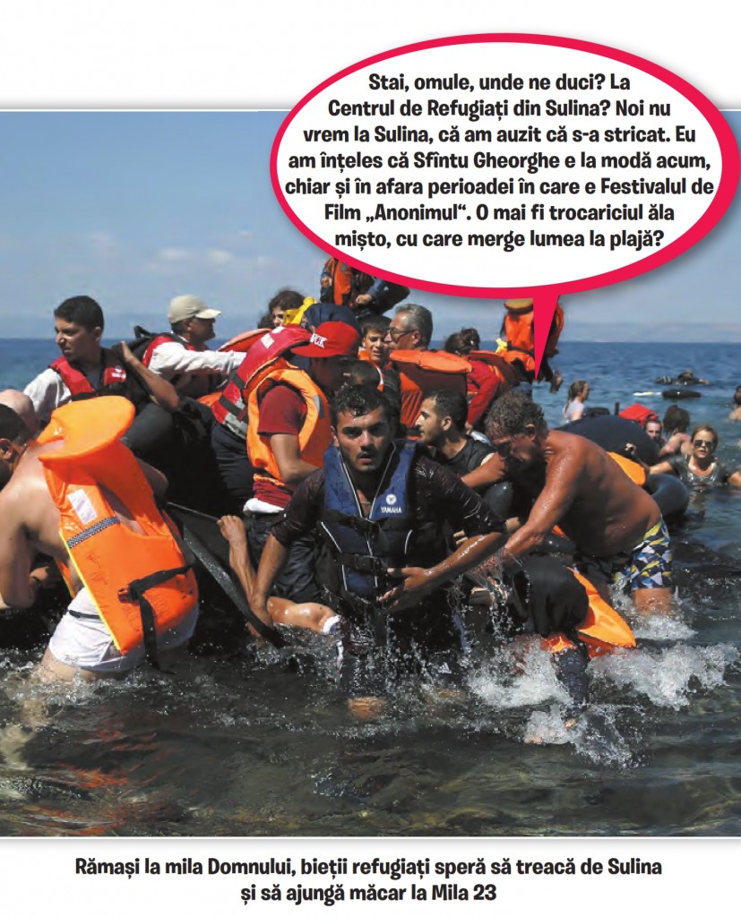 Teoretic, e posibil. Dacă o parte dintre milioanele de refugiați care sufocă Turcia vor primi undă verde și vor găsi vase care să-i ducă pe apele Mării Negre, Sulina ar putea fi unul dintre locurile de debarcare. Cu o singură condiție: să știe și călăuzele ce planuri de ospitalitate se coc prin Delta Dunării. Căci planuri se fac, asta-i sigur. Nu mai departe de săptămâna trecută, prefectul de Tulcea, Marin Bădiță, a început să discute cu autoritățile din Sulina, pentru a vedea unde ar putea fi cazați refugiații. Cică o soluție ar fi fostul spital din Sulina, închis în urmă cu patru ani. Și ar mai fi o creșă, în caz că vin prea mulți. Mai mult, există și planurile B și C, în caz că ăia chiar iau în serios oferta tulcenilor și se hotărăsc să vină valuri-valuri. De ce să nu fie adăpostiți, dacă se poate, și în tabăra de copii din Sulina sau în casele de vacanță și pensiunile care, peste iarnă, stau goale? Uite, Hagi și Gică Popescu au și ei o casă cu ceva curte, unde, la nevoie, ar intra câteva familii de sirieni. Da’ să fie microbiști, în primul rând, și să aibă bunul-simț de a ține cu Galatasaray, nu cu Fenerbahçe, în al doilea rând.