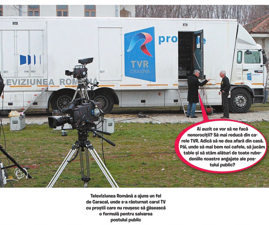 – managerii incredibil de slabi pe care i-a avut TVR (niște politruci aroganți, lipsiți de viziune și de boașe, care și-au văzut de interesele lor (unele foarte bănoase), nu de misiunea publică. Au oprit producția, au eliminat criteriile de performanță, au căpușat instituția, au încurajat nepotismul și nemunca, au tăiat indexările salariale (ceea ce execută acum angajații), semnând astfel sentința televiziunii publice;
