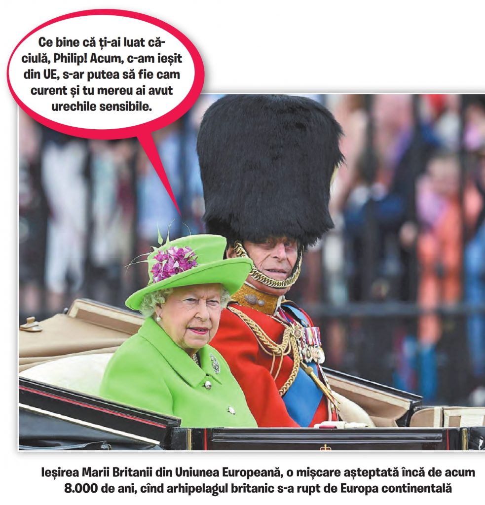 Dragă jurnalule, n-am înțeles niciodată ce-i acest Brexit. Am crezut mereu că-i vreo perversiune pe care o fac tinerii din ziua de azi, ca selfie-urile sau binging-ul. Mă uit uneori și la Charles ăsta, om în toată firea și merge cu automobilul ca toți golanii! Mergi, băiatule, cu trăsura, că doar n-am crescut un drogat în casa mea regală…