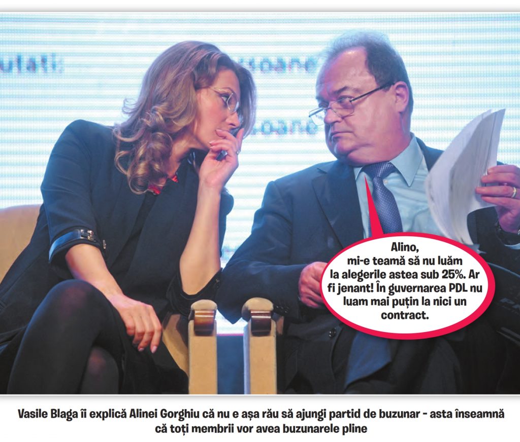 În 1981, când a terminat facultatea, și în cei opt ani ani ce s-au scurs până la revoluție, Vasile avea şanse să ajungă cineva doar dacă se lega bine, cu funii groase, de partid. Ceea ce, ca orice om înțelept, a făcut. Nu ajunsese, însă, chiar mare de tot, așa că în ianuarie 1990 a păstrat funiile, dar a schimbat brusc partidul. L-a nimerit pe ăla bun, bun de tot, care a fost și e la putere, sub diferitele sale forme, de 26 de ani și tot nu se satură. Cert e că, din 1990 încoace, cu ajutorul partidului, Vasile Blaga din Petrileni, județul Bihor, n-a mai fost nevoit să muncească nici măcar o singură zi din viața lui. Să muncească în producție, adică, pentru că, altfel, ceea ce face el cu partidul și cu prietenii acestuia tot un soi de muncă se numește.