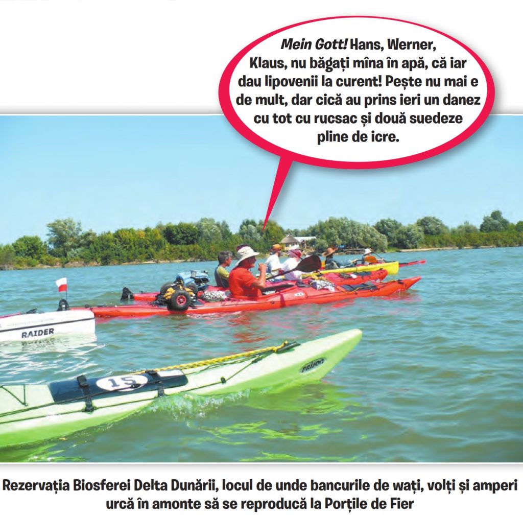 De mai bine de 60 de ani, niște oameni cu mult timp și mult mai multă ambiție pleacă din Germania, de la Ingolstadt, din apropiere de izvoarele Dunării, pentru a ajunge la vărsarea acesteia în mare, la Sfântu Gheorghe. Nimic deosebit dacă ar face-o cu vaporașul, ajutând INS-ul să se laude cu numărul mare de turiști străini care vizitează Delta Dunării de pe vasele fluviale de croazieră. O vizitează doar cu numele, căci coboară de pe vasele acelea în Deltă o dată sau de două ori, fie pentru a mânca într-un resort izolat, fie pentru a se deplasa în excursiile organizate de firme nemțești prin județele Tulcea și Constanța. Uneori mai coboară și pentru a merge spre avionul care-i duce înapoi spre casă, ceea ce, pentru ei, poate fi și o ușurare. Încă o croazieră bifată în care familia n-a fost nevoită să plătească repatrierea.