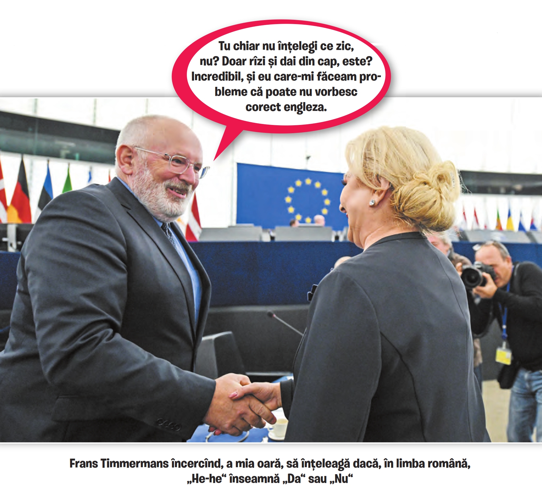 Frans Timmermans e tot mai atent, tot mai dezamăgit, tot mai îngrijorat, iar Viorica Dăncilă e tot mai deschisă: la dialog, la culoarea țoalelor, la zâmbet.